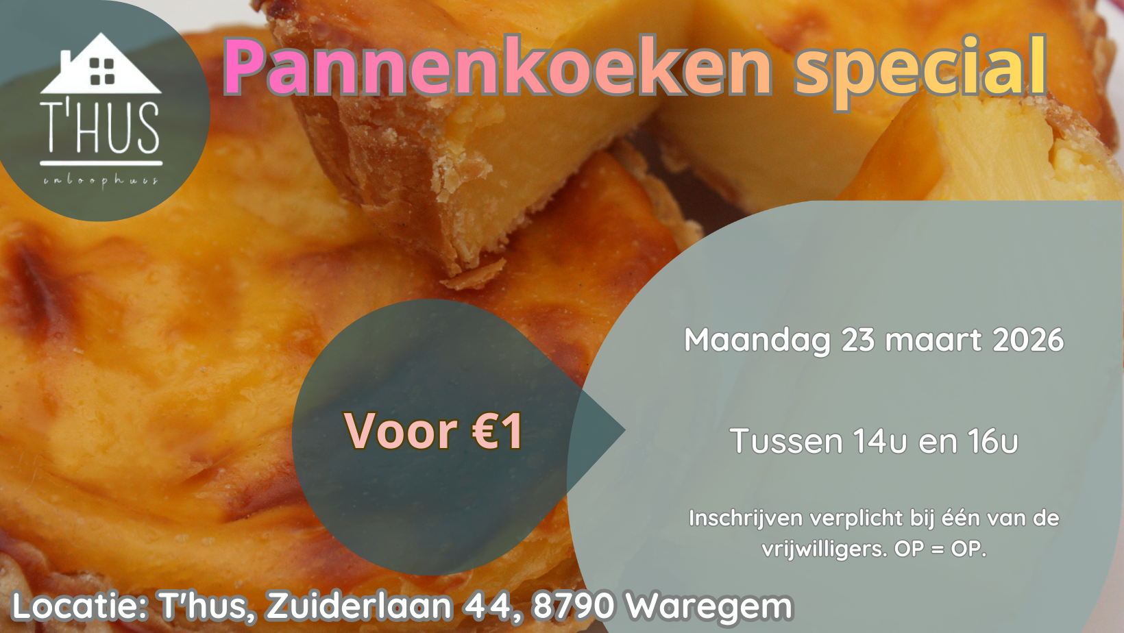 Inschrijven verplicht zowel voor de maaltijd op dinsdag als voor het dessert op maandag. We vragen om vooraf in te schrijven op thus@debolsterwaregem.be of bij één van de vrijwilligers.